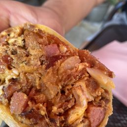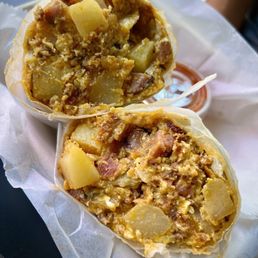 This burrito isn't something I would normally reach for just due to its inherent size and nature, but this morning I woke up in need of some thing filling, hearty, protein dense, and just delicious. Let me tell you, this burrito, right here did the job exceedingly well. It is quite large and heavy and I quickly found out I'll probably only eat a third of it if that, but it is so delicious that I'm having a hard time stopping myself from going full force. This place is tiny and quaint, but the food is delicious and the service is excellent, great place to grab breakfast or lunch to eat here or on the go. The salsa that accompanies the burrito is actually excellent as well and I'm a pretty picky salsa connoisseur. Highly recommend for days when you really need something that packs a punch in terms of flavor and calories.